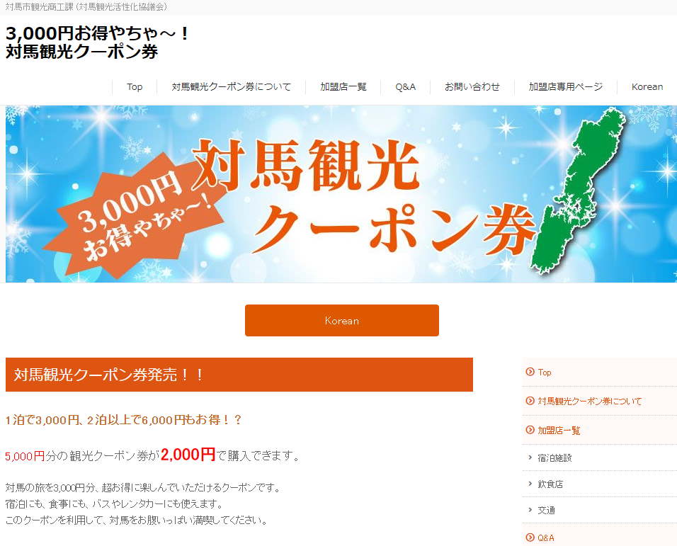 対馬の旅を3,000円分、超お得に楽しんでいただけるクーポンです。